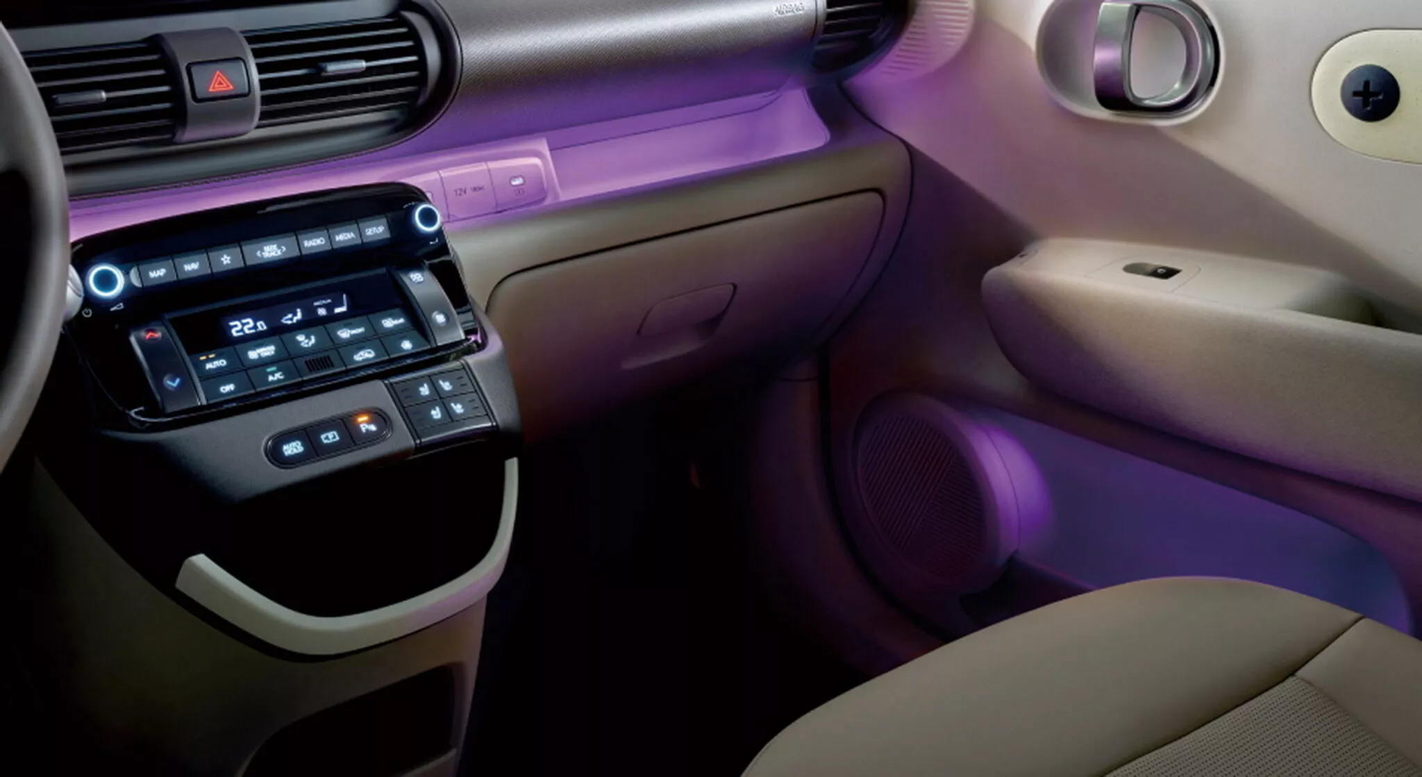 캐스퍼 일렉트릭 라운지는 첨단 기술 측면에서도 부족함이 없어요. 10.25인치 인포테인먼트 디스플레이와 디지털 계기판이 기본으로 제공되거든요.