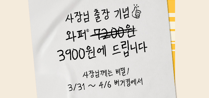 - 내용: 와퍼 7,200원 → 3,900원 판매