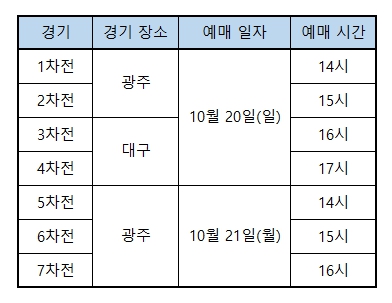 • 10.21(월) 18:30 1차전 광주기아챔피언스필드