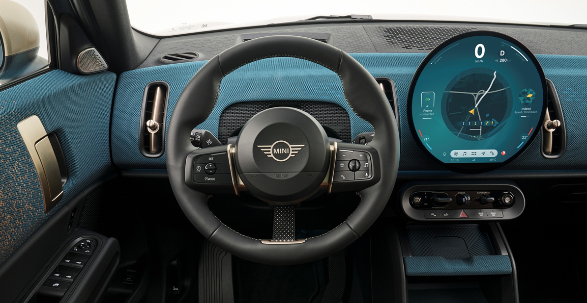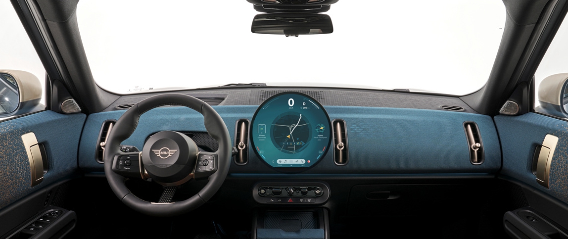 신형 미니 컨트리맨 E 2025의 실내는 기존보다 한층 더 미니멀하고 모던한 분위기로 구성됐습니다. 센터페시아 디자인을 간소화하여 디지털 디스플레이에 집중함과 동시에, 물리적 버튼은 꼭 필요한 것만 남겨 사용자 편의성에 초점을 맞췄습니다.