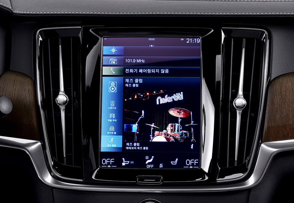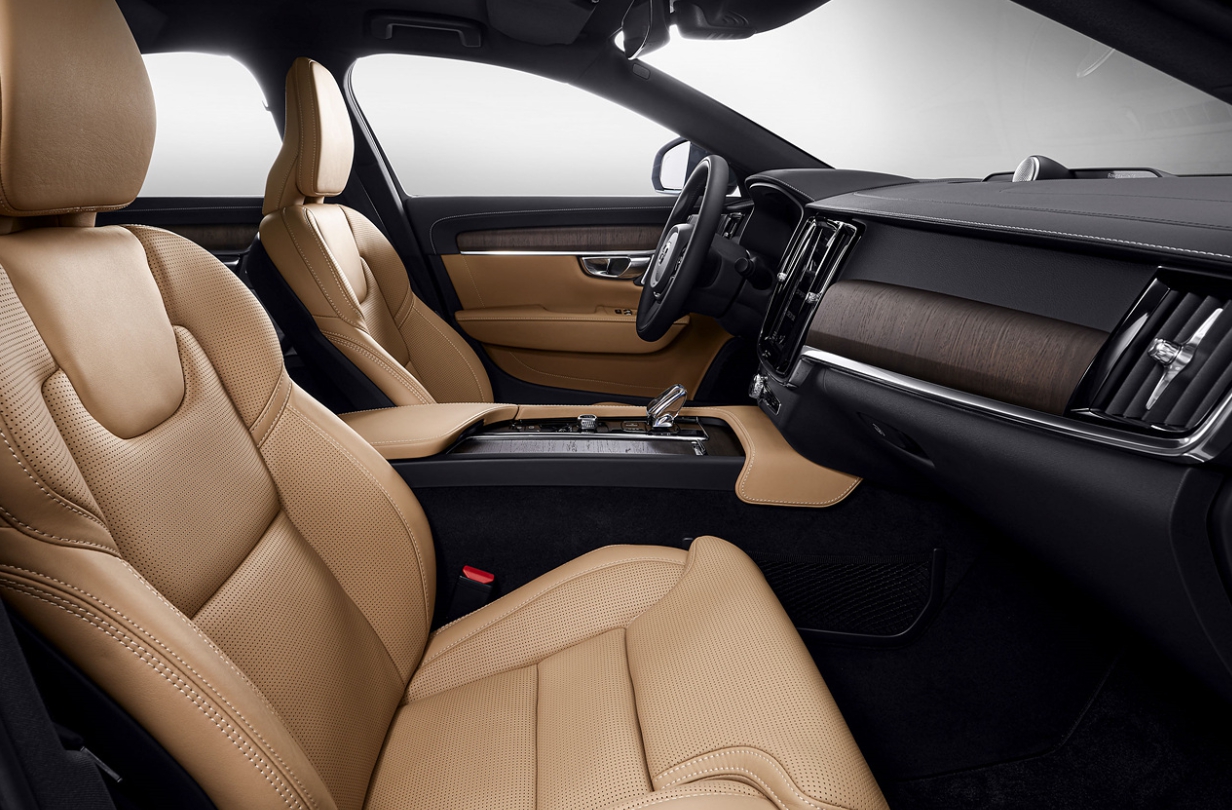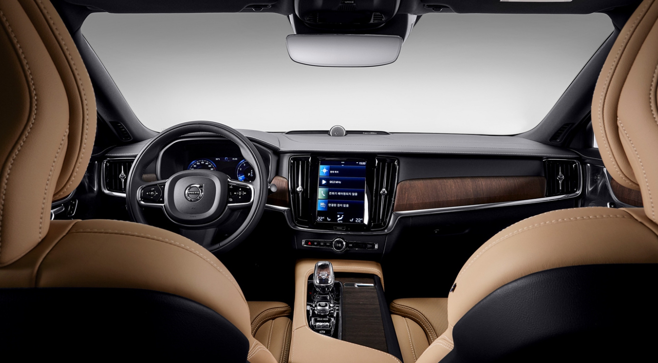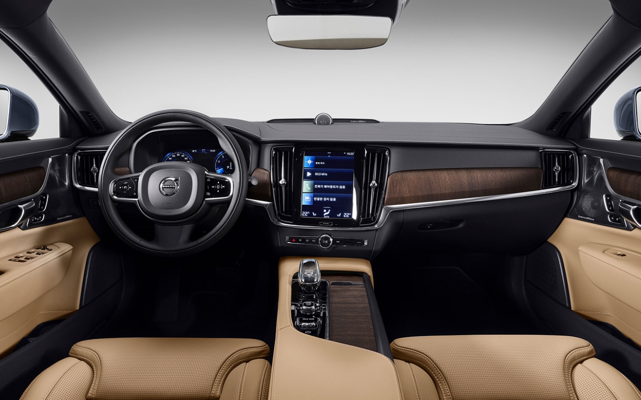 S90의 실내는 여전히 북유럽 감성의 절정을 보여줍니다. 우드 트림과 알루미늄, 가죽이 절묘하게 조화를 이루며, 운전석에 앉는 순간 고급스러움과 정숙함이 느껴집니다.