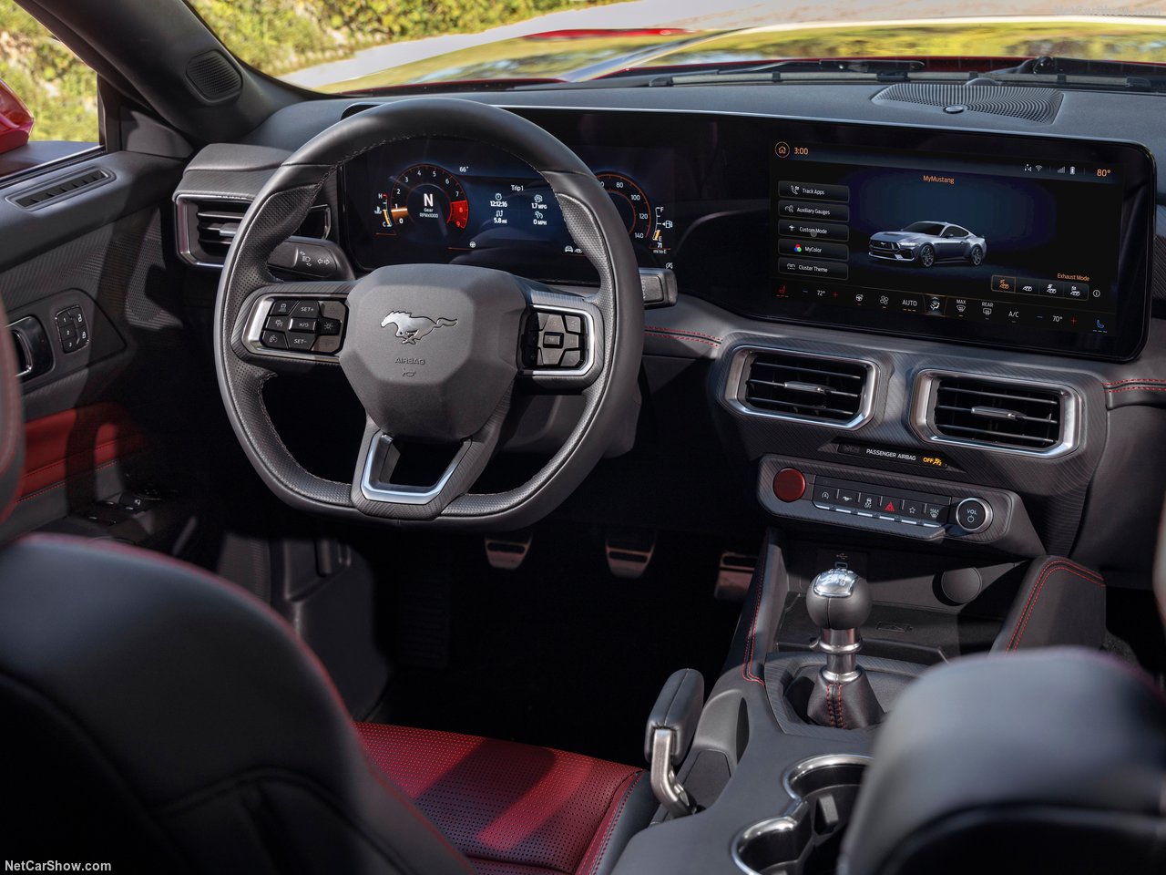 실내는 최신 SYNC 4 인포테인먼트 시스템을 중심으로 모든 기능이 터치와 디지털로 통합되어 있으며, 스포츠 버킷 시트와 탄소섬유 패턴 인테리어가 적용된 점이 특징입니다.