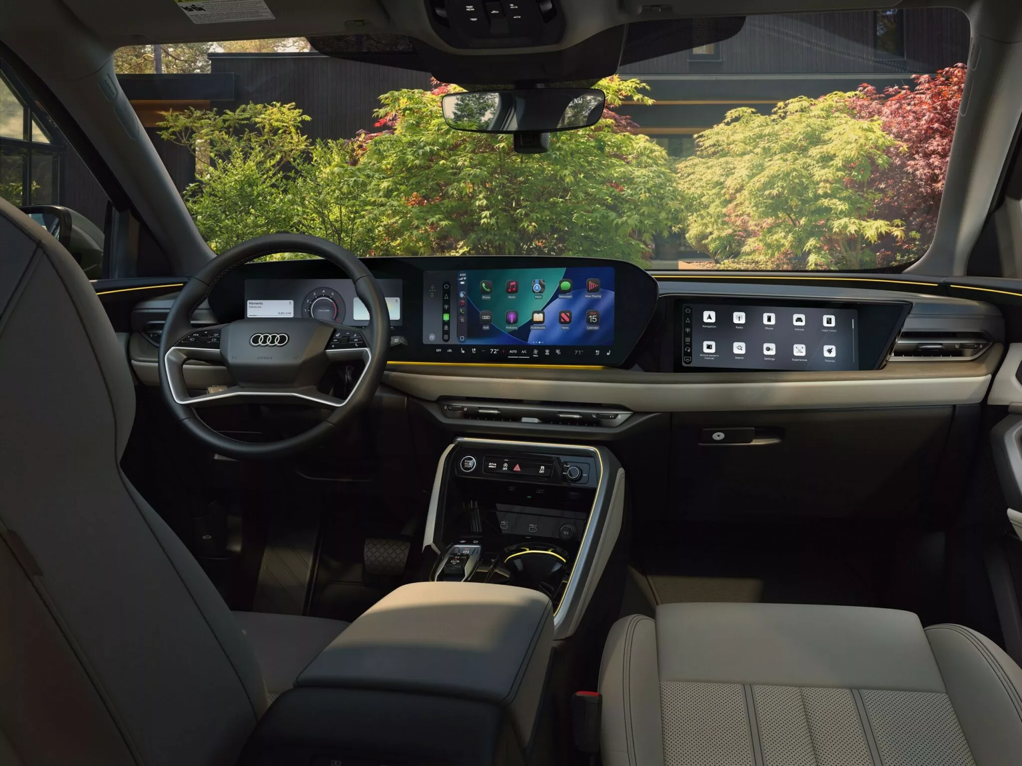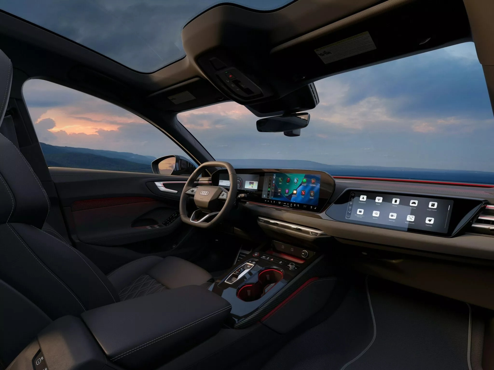 아우디가 디지털 스테이지라고 부르는 3디스플레이 구조는 그대로 유지됩니다. 계기판과 중앙 디스플레이, 그리고 조수석 화면까지 이어지는 구성은 여전히 인상적이에요. 다만 2026년형에서는 화면 구성 방식이 꽤 달라졌습니다.