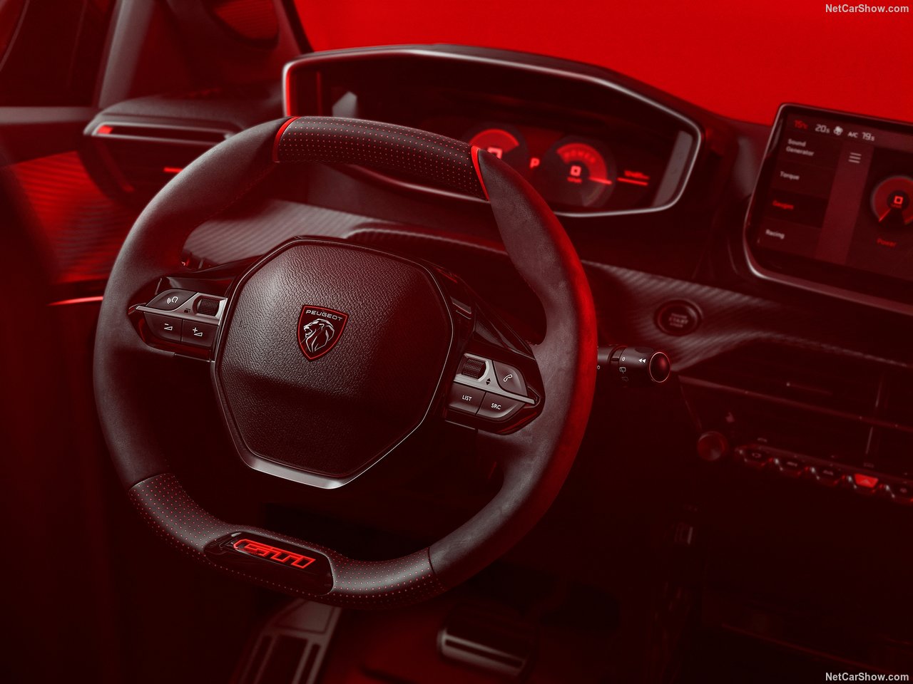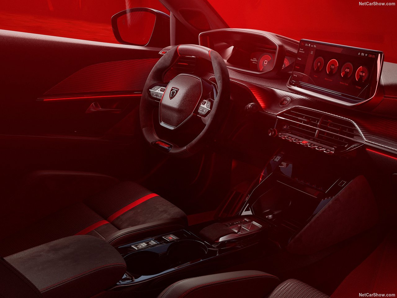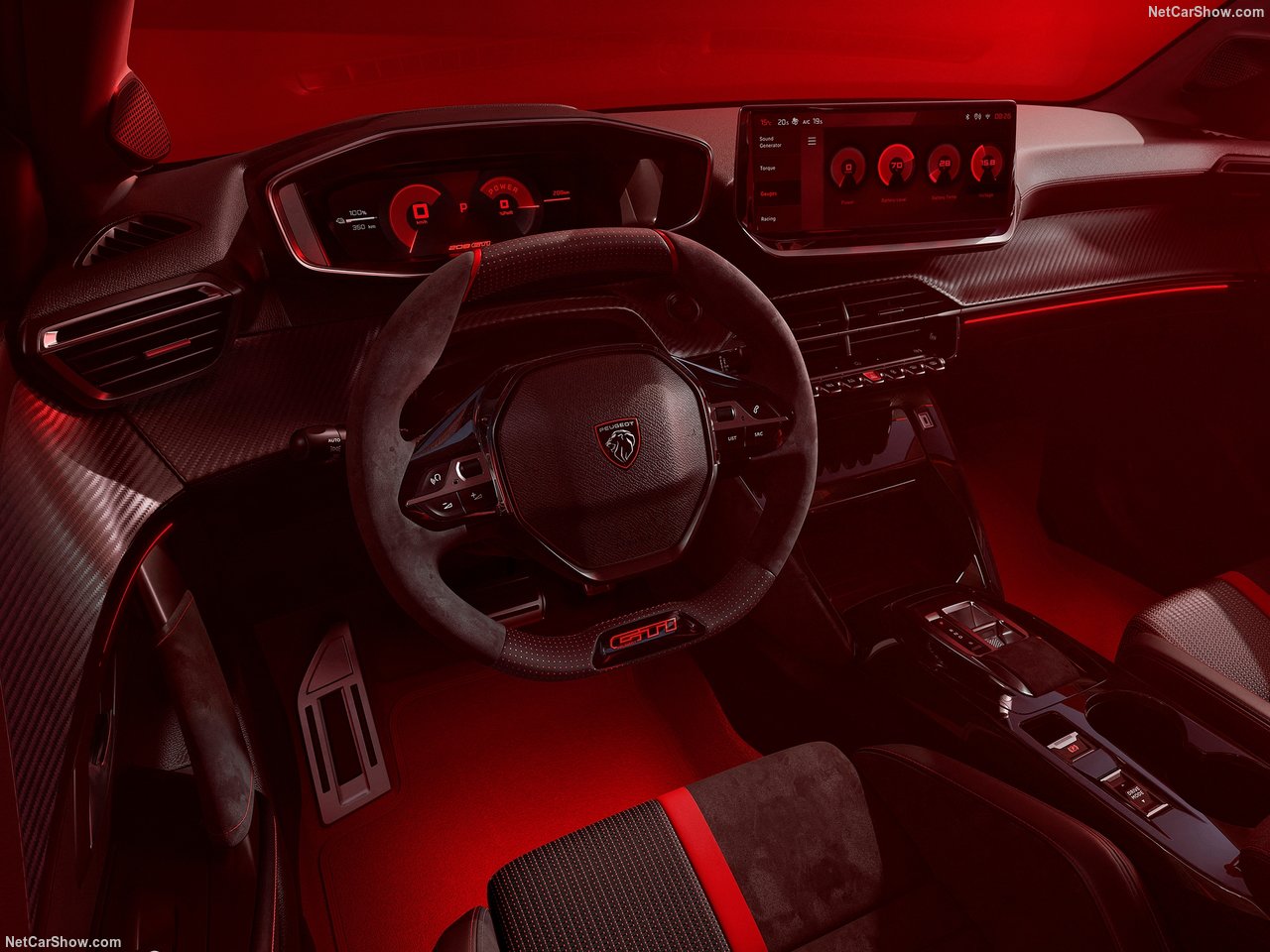 푸조의 시그니처 요소인 '아이콕핏(i-Cockpit)'은 더욱 진화된 형태로 적용되어, GTi 전용 스포츠 시트, 금속 페달, 붉은색 스티치 디테일 등 고성능 감성을 실내에서도 이어갑니다. 주요 특징으로는 알칸타라 재질 스티어링 휠, 붉은색 하이라이트와 디지털 클러스터를 포함합니다.