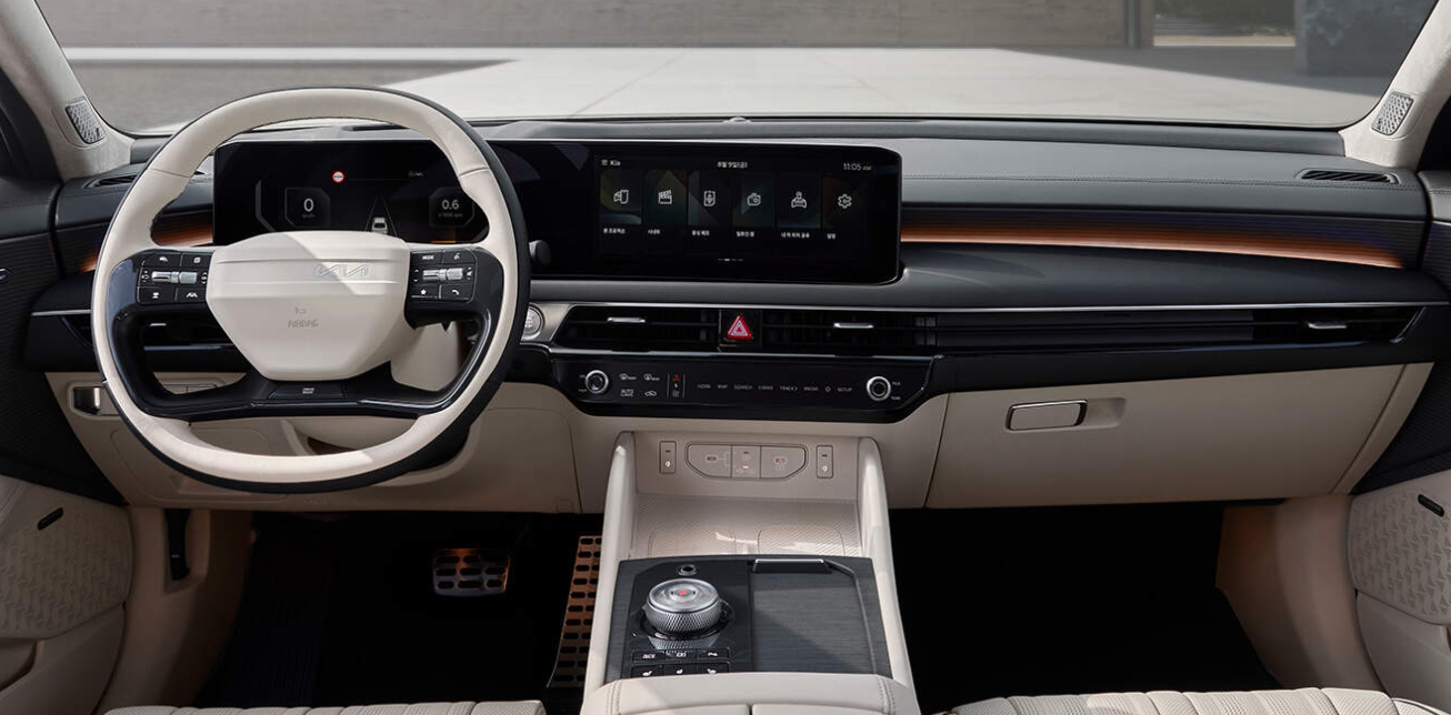 K8 하이브리드의 실내는 편안함과 고급스러움을 동시에 추구합니다. 고급 소재를 사용해 시트를 제작하고, 대시보드 및 도어트림에도 세밀한 마감 처리를 선보였으며, 다양한 컬러 옵션이 제공됩니다. 또한 12.3인치 클러스터와 센터 디스플레이가 결합되어 운전자에게 직관적인 인터페이스를 제공합니다. 각종 편의 사양도 충실하게 갖춰져 있어 장거리 주행 시에도 피로도를 최소화합니다.