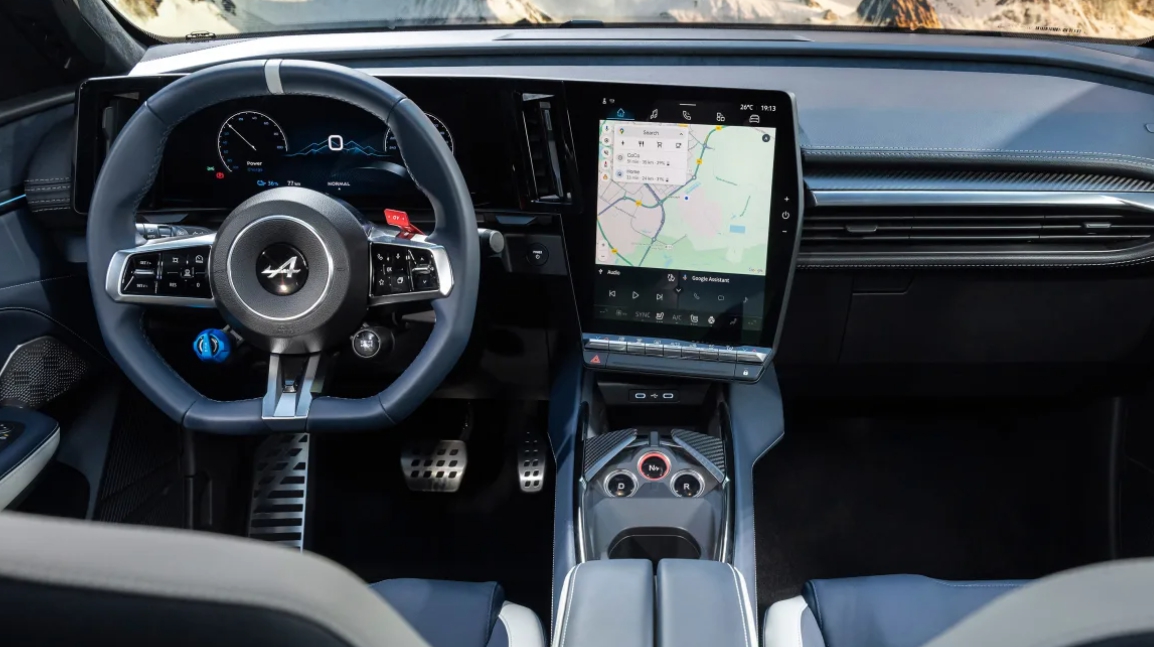 스티어링 휠에는 드라이브 모드 변경, 회생 제동 조절 다이얼, 오버테이크 기능 버튼 등이 포함되어 있으며, 알핀 전용 UI와 앰비언트 라이트는 브랜드 아이덴티티를 강조합니다. 스포츠 버킷 시트는 리사이클 패브릭과 알칸타라를 조합하여 경량화와 지속 가능성을 동시에 구현했습니다.