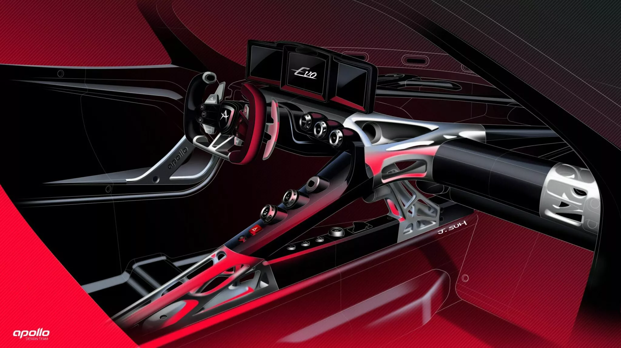 아폴로 에보는 처음부터 도로 위를 달릴 생각이 없었습니다. 충돌 테스트나 보행자 보호 기준을 충족할 필요가 없었기 때문에, 설계 전반이 훨씬 자유로워졌어요. 그 결과 디자인은 과감해졌고, 기능을 우선한 형태가 그대로 드러납니다. 보기 위한 차라기보다는, 기록을 남기기 위한 도구에 가깝습니다.