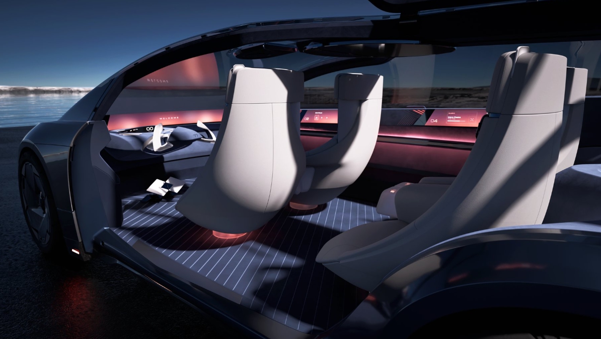 ArcFox 77의 인테리어는 기존 ArcFox 모델들과는 완전히 다른 접근을 보여줍니다. 멀티-씬 인터페이스와 자가 학습 기반 인공지능, 회전식 좌석, 360도 AR HUD 등 최첨단 기능이 탑재되어 있으며, 사용자의 요구에 따라 디스플레이와 좌석 배치가 변형되는 유연한 구조로 설계되어 있습니다.