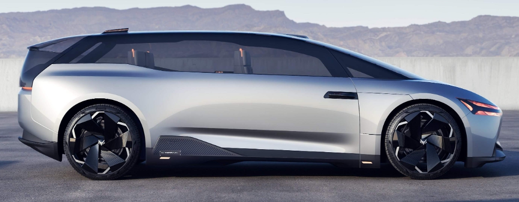사이드 뷰는 전기차 특유의 낮은 무게중심을 강조하면서, 바람을 가르듯 매끄럽게 흐르는 라인으로 구성돼 있습니다. 카메라형 사이드 미러, 숨겨진 도어 핸들, 낮은 루프라인은 공기역학 최적화를 위한 설계로 보이며, 전반적으로 테슬라 로드스터, 포르쉐 타이칸을 연상시키는 실루엣입니다.