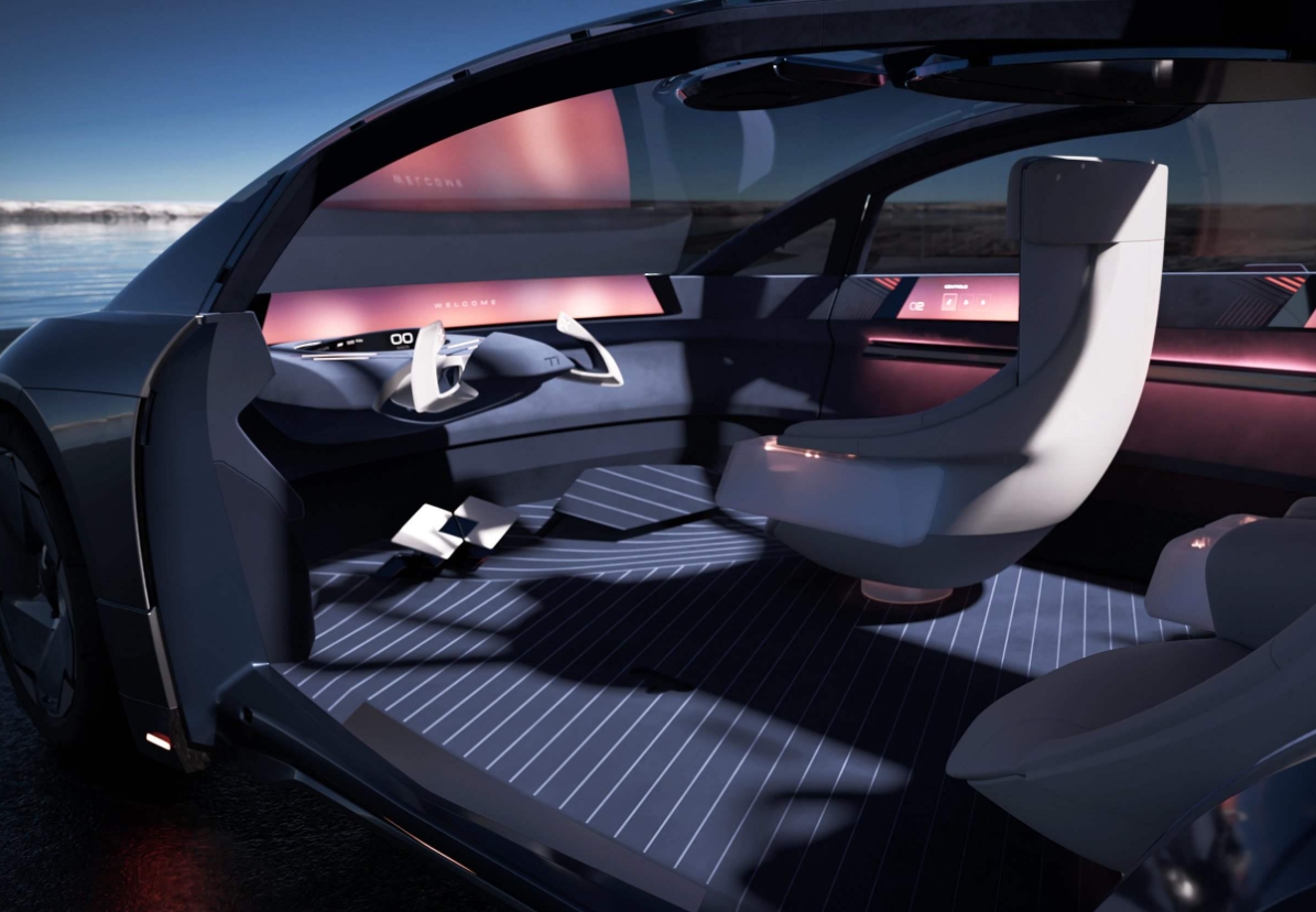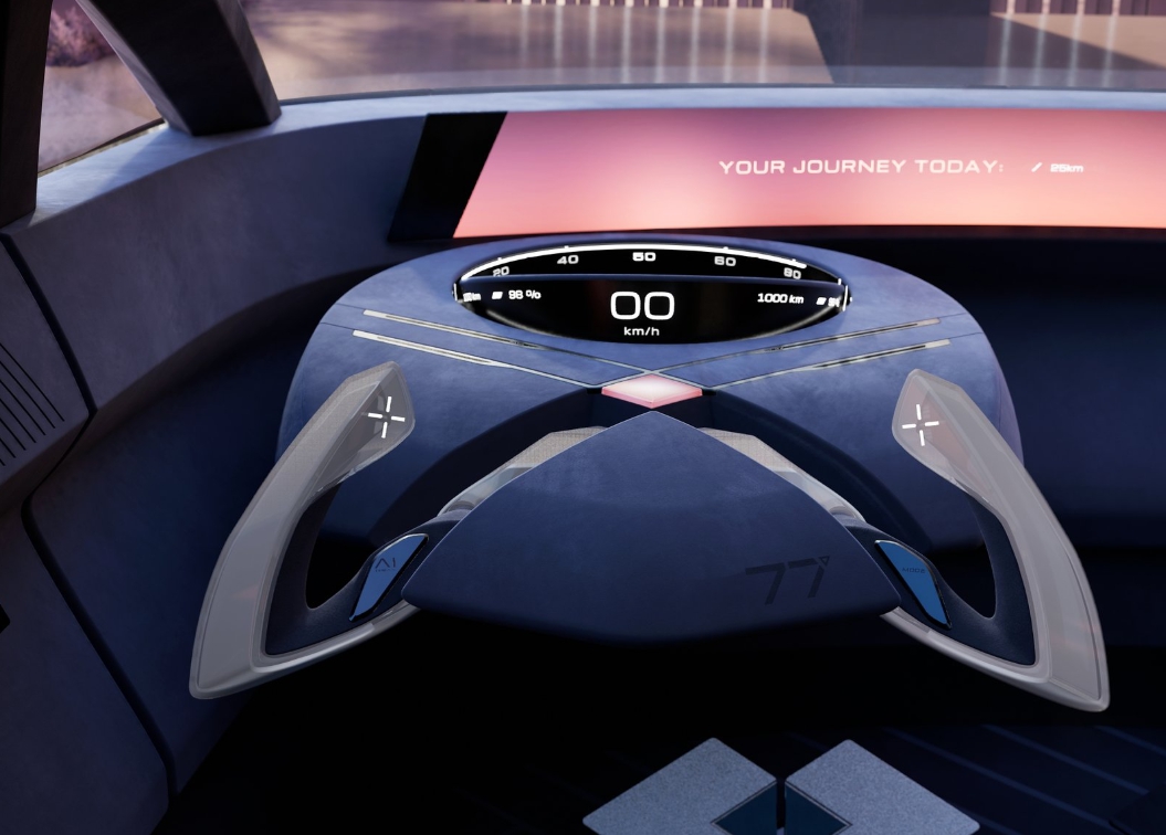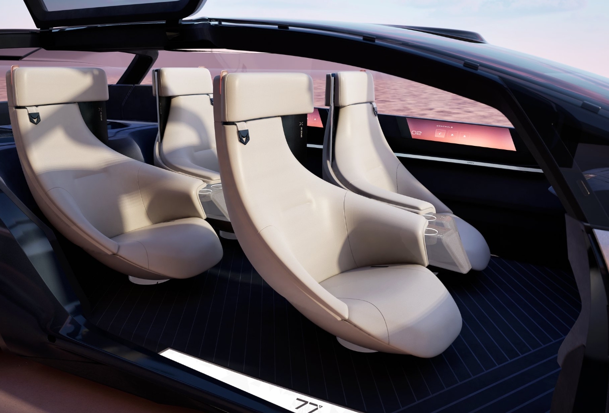 ArcFox 77의 인테리어는 기존 ArcFox 모델들과는 완전히 다른 접근을 보여줍니다. 멀티-씬 인터페이스와 자가 학습 기반 인공지능, 회전식 좌석, 360도 AR HUD 등 최첨단 기능이 탑재되어 있으며, 사용자의 요구에 따라 디스플레이와 좌석 배치가 변형되는 유연한 구조로 설계되어 있습니다.