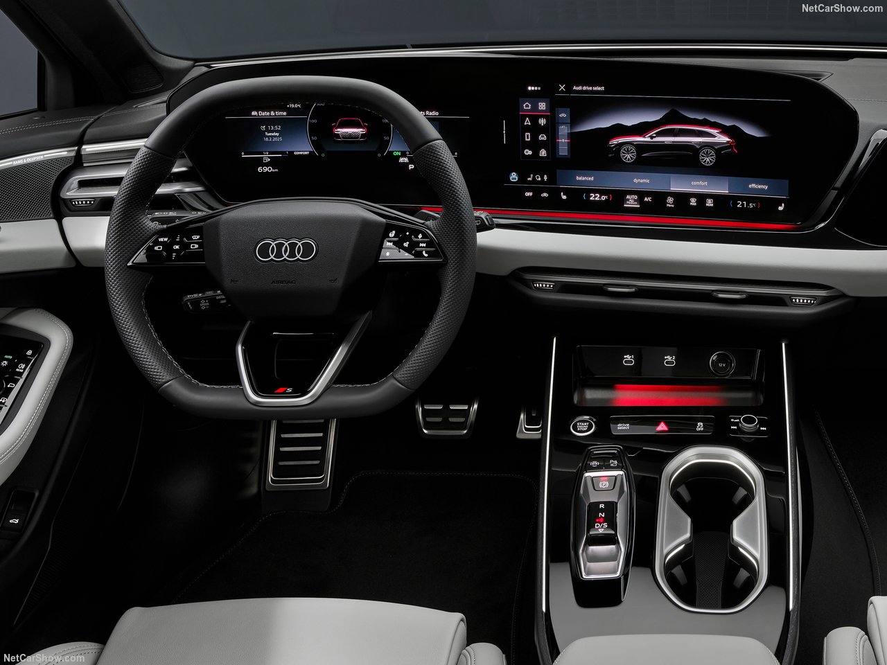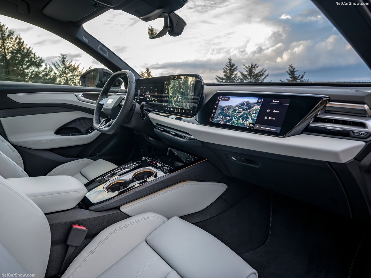 측면은 아우디 특유의 긴 루프라인과 짧은 오버행 구조로 클래식한 왜건 실루엣을 유지하면서도, 도어 하단부의 강한 캐릭터 라인이 역동적인 느낌을 부여합니다. 후면부는 전면과 통일성을 이루는 LED 라이트 바와 리어 스포일러로 마감되며, EV 특유의 미니멀한 배기구 삭제가 눈에 띕니다.