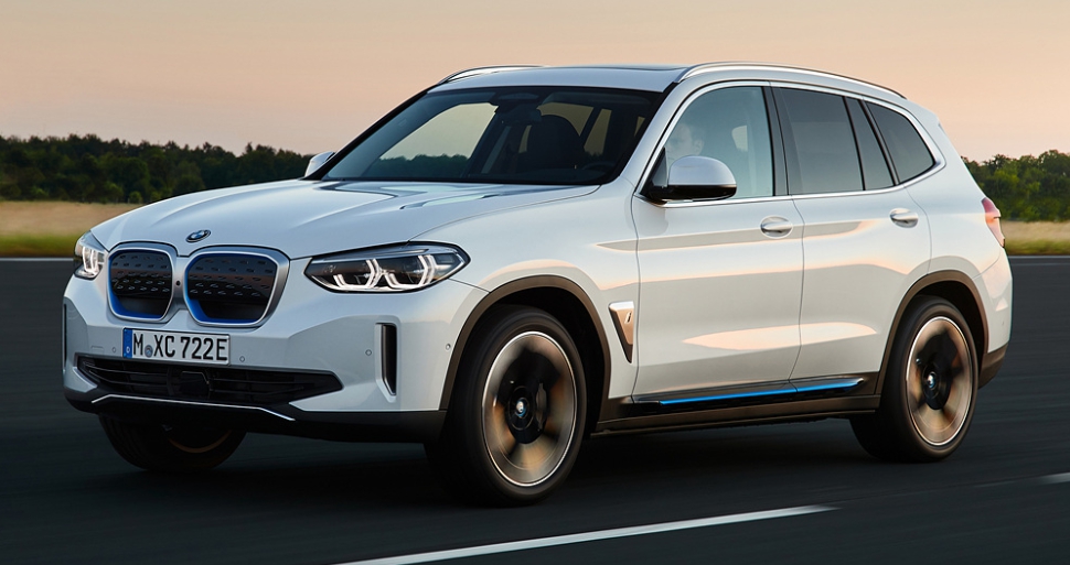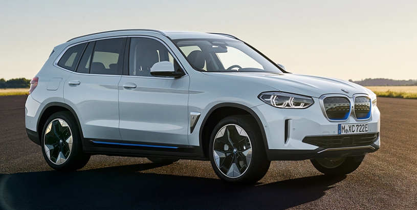 BMW iX3는 내연기관 X3와 거의 동일한 외형을 유지하지만, 다음과 같은 전기차 전용 디자인 요소가 적용됩니다.