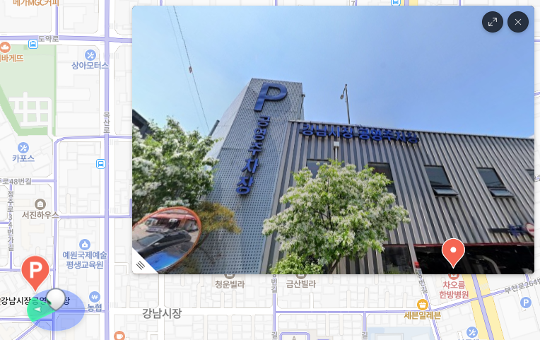 - 주차장 목록에서 ‘강남시장 공영주차장’ 선택