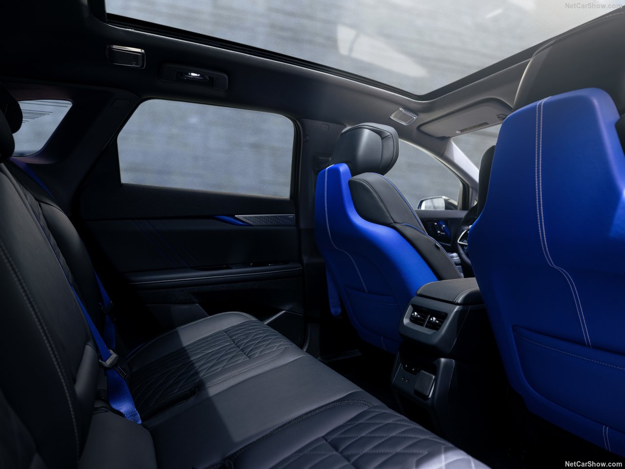 옵틱-V는 외관에서부터 고성능 전기 SUV의 정체성을 명확히 드러낸다. V-시리즈 배지가 적용되어 브랜드의 고성능 라인업임을 알리며, 21인치 전용 휠과 전용 프런트 립, 블랙 루프가 적용되어 일반 옵틱 모델과 차별화된다. 실내에는 카본 파이버 및 가죽 인테리어 마감과 V-시리즈 스포츠 시트가 적용되어 고성능 모델의 정체성을 강조했다.