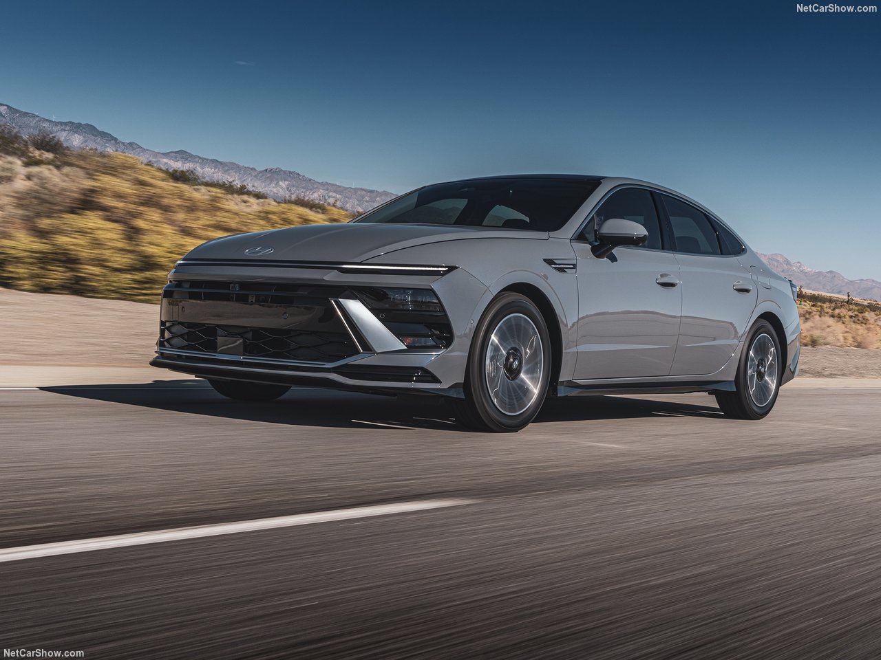 소나타는 기존 모델의 페이스리프트 버전으로 ‘센슈어스 스포티니스 2.0’ 디자인 언어를 반영한 전면부가 특징입니다. 수평형 LED DRL과 얇은 헤드램프, 파라메트릭 쥬얼 패턴 그릴은 미래지향적인 인상을 줍니다. 전반적으로 전자기기와의 유사성이 강조된 디자인입니다.