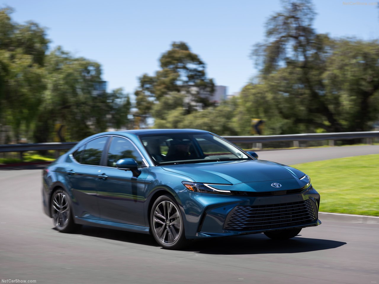 2025년형 캠리는 풀체인지 모델로, 완전히 새로운 TNGA-K 플랫폼을 기반으로 설계되었습니다. 날렵한 헤드램프 디자인과 스포티한 전면 범퍼, 넓은 공기 흡입구가 강조되어 이전보다 더 역동적인 인상을 줍니다. 후면부 역시 슬림한 테일램프와 세련된 트렁크 리드가 특징입니다.