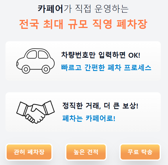 카페어, 폐차 중개 수수료 없는 직영 견적 서비스