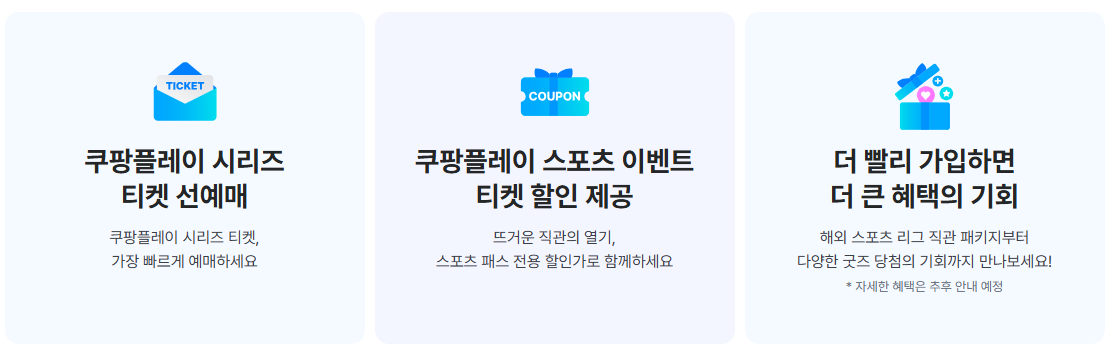 - 스포츠패스 회원은 쿠팡플레이 시리즈의 오프라인 경기 티켓을 일반 회원보다 먼저 선예매할 수 있습니다.