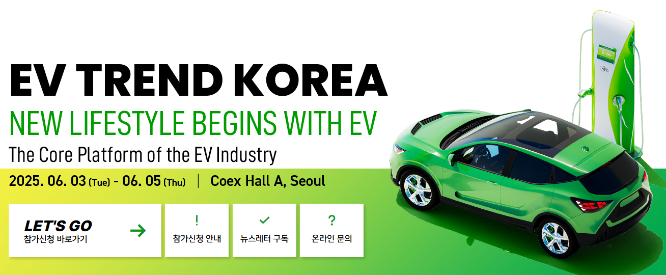 EV트렌드코리아(EV TREND KOREA)는 매년 서울에서 개최되는 대한민국 대표 전기차 및 친환경 모빌리티 전문 전시회입니다. 환경부가 주최하고, 코엑스, 한국배터리산업협회, 한국자동차환경협회 등이 주관하며, 자동차 제조사, 부품사, 충전기 제조업체, 에너지 기업, 스타트업 등 수백 개 업체가 참여합니다.