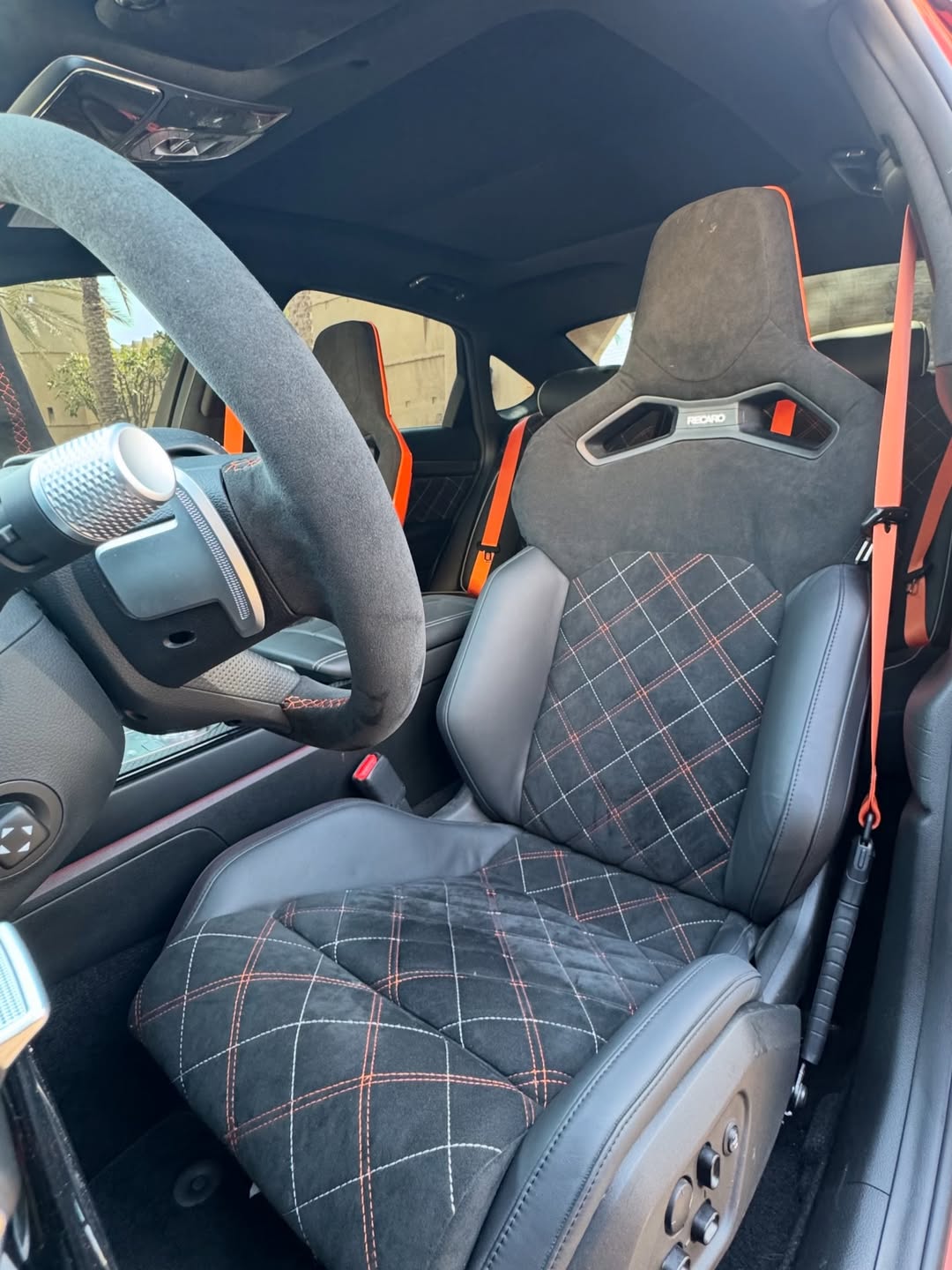 외관에서는 블랙 처리된 그릴과 공기 흡입구가 가장 먼저 눈에 들어옵니다. 전용 휠과 브렘보 브레이크도 적용돼 기능적인 변화가 분명해요. 후면부에는 립 스포일러와 블랙 디퓨저가 더해졌습니다. 실내에서는 레카로 시트가 핵심입니다. 블랙 가죽과 알칸타라 조합에 오렌지 컬러 포인트가 들어가며, 기존 G80과는 완전히 다른 분위기를 만듭니다.