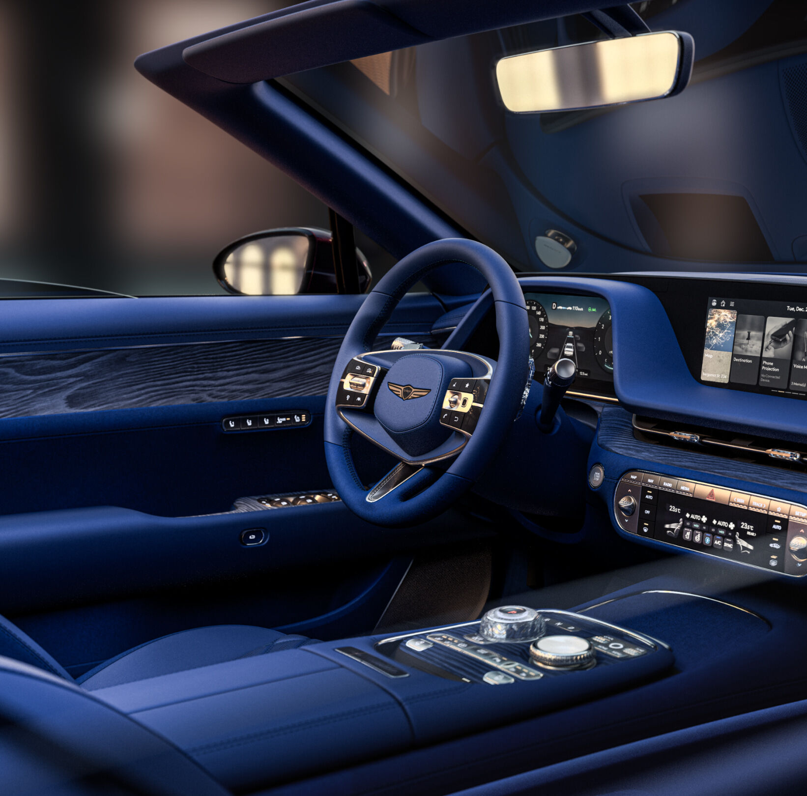 Genesis X Gran Convertible Concept의 실내는 운전자를 중심으로 구성된 감각적인 공간이 특징입니다.
