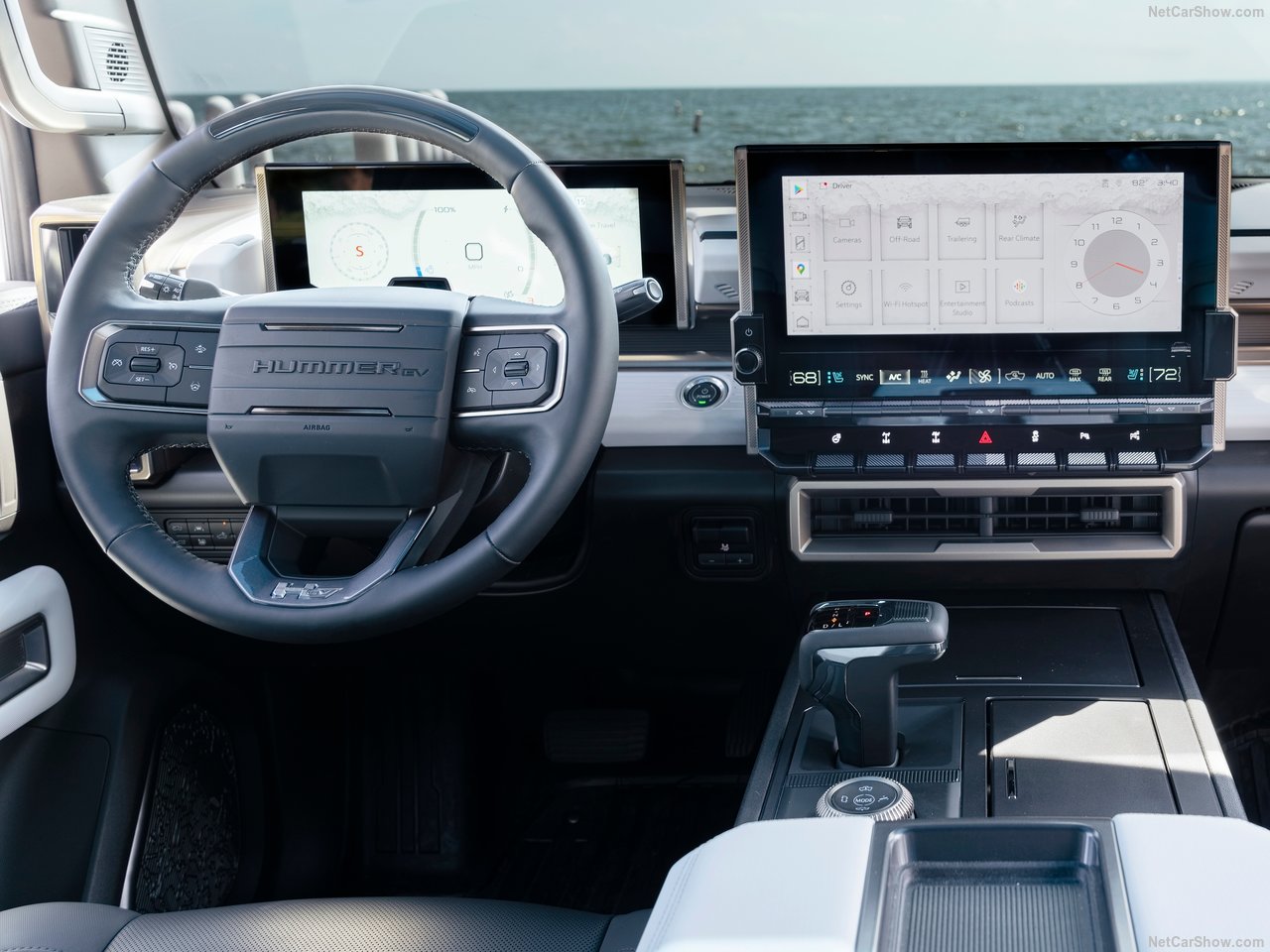 허머 EV는 앞에 하나, 뒤에 두 개의 모터를 쓰는 트라이 모터 방식입니다. 출력은 약 1,000마력 수준으로 알려져 있고, 바퀴로 전달되는 토크는 환산 기준 11,500lb-ft에 달해요.