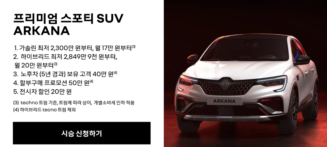 - 신청 방법: 르노코리아 공식 홈페이지 또는 전국 르노 전시장 방문 및 전화 상담