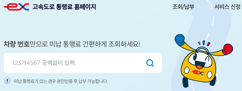 - 차량번호 및 인증절차 후 미납요금 확인 가능