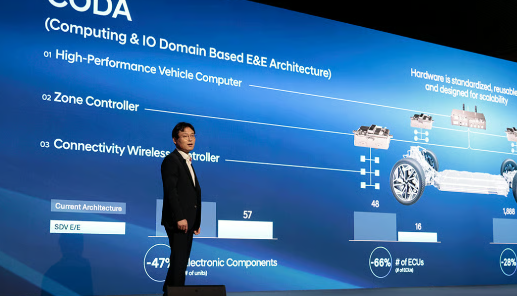 또한 소프트웨어 정의 차량(SDV) 전환에도 속도를 내고 있습니다. 핵심은 CODA 아키텍처와 고성능 차량 컴퓨터(HPVC)이며, 이를 통해 하드웨어와 소프트웨어를 분리하여 개발 효율성과 확장성을 극대화합니다.