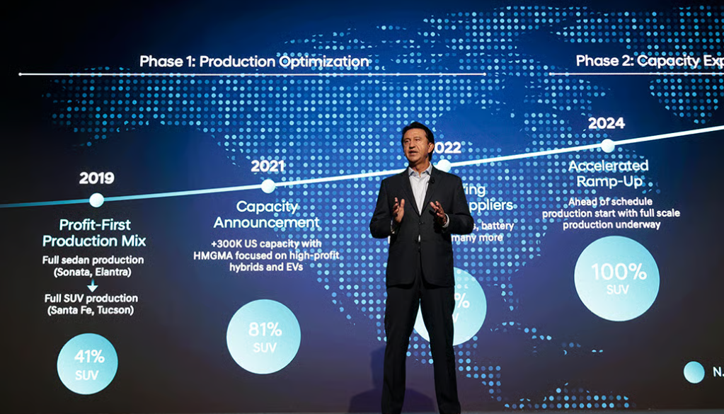 - 미국 조지아주 HMGMA 공장: 50만 대 생산 목표, 3,000명 신규 고용, 27억 달러 투자