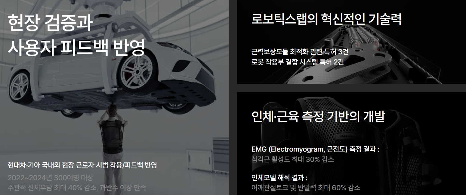 로봇 착용 이후 조립 속도와 정확도가 평균 10~15% 향상되었으며, 불량률도 감소한 것으로 나타났습니다. 이는 단순히 기계적 도움을 넘어서, 근로자의 집중력과 작업 만족도를 향상시킨 결과입니다.