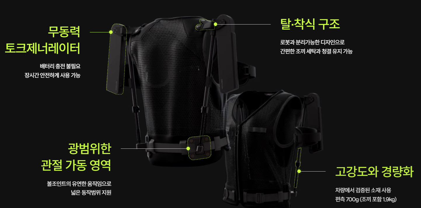 현대차·기아는 공장에서의 근골격계 질환 예방을 중장기 과제로 삼아 왔습니다. 특히 팔, 어깨, 허리 등 반복적이고 부하가 큰 작업으로 인해 발생하는 질환은 작업자의 건강과 생산 효율성에 모두 영향을 미칩니다. 착용형 로봇은 이러한 부담을 줄이고 장기적으로는 의료비 감소와 병가율 하락에 기여할 수 있습니다.