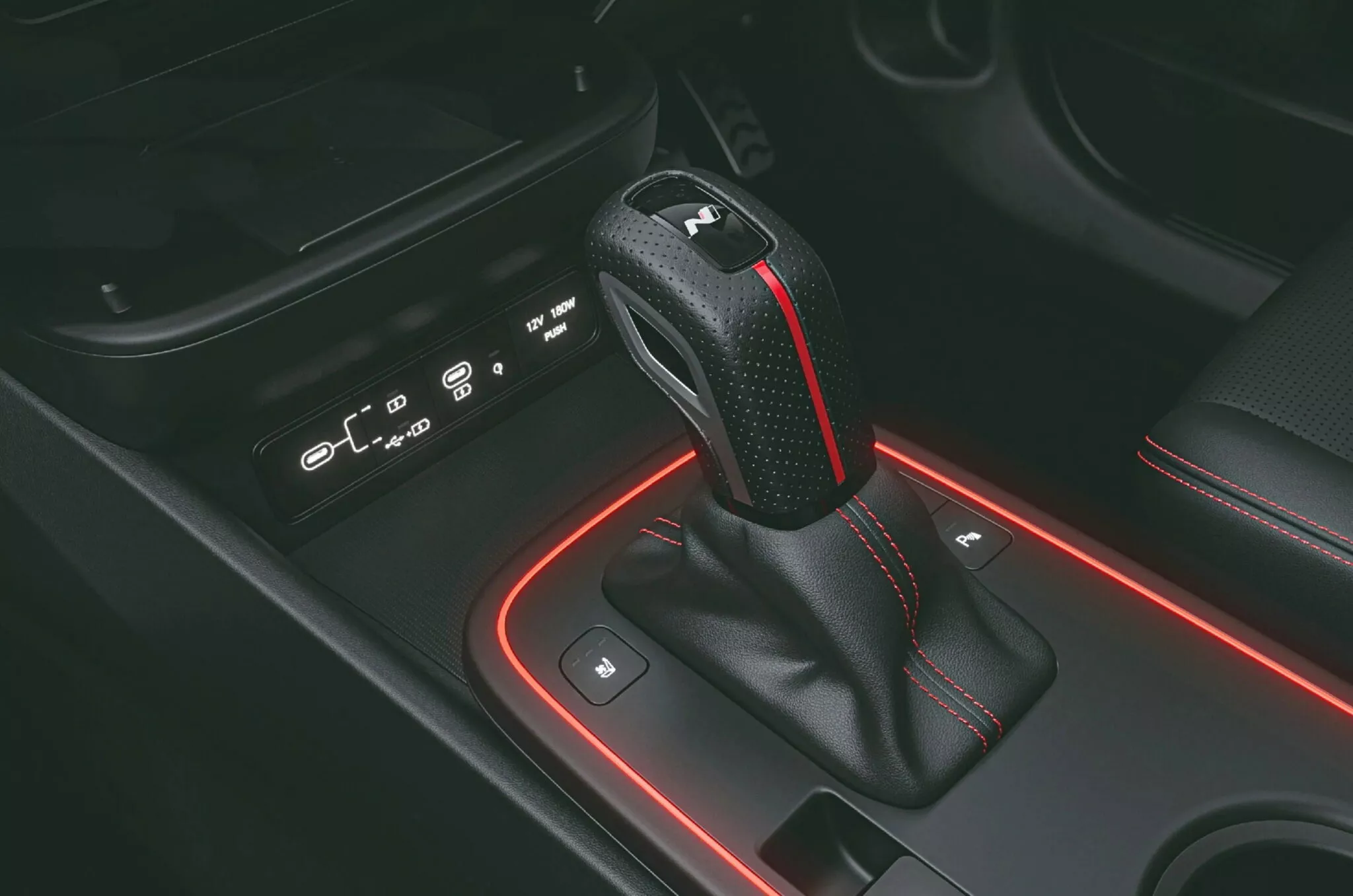 기어노브, 시트, 페달 하나하나에 N 엠블럼이 새겨져 있고, 앰비언트 라이트는 붉은색으로 은은하게 빛나요. 운전석에 앉는 순간 ‘내가 N 라인 모델을 타고 있구나’ 하는 감정이 자연스럽게 느껴집니다.