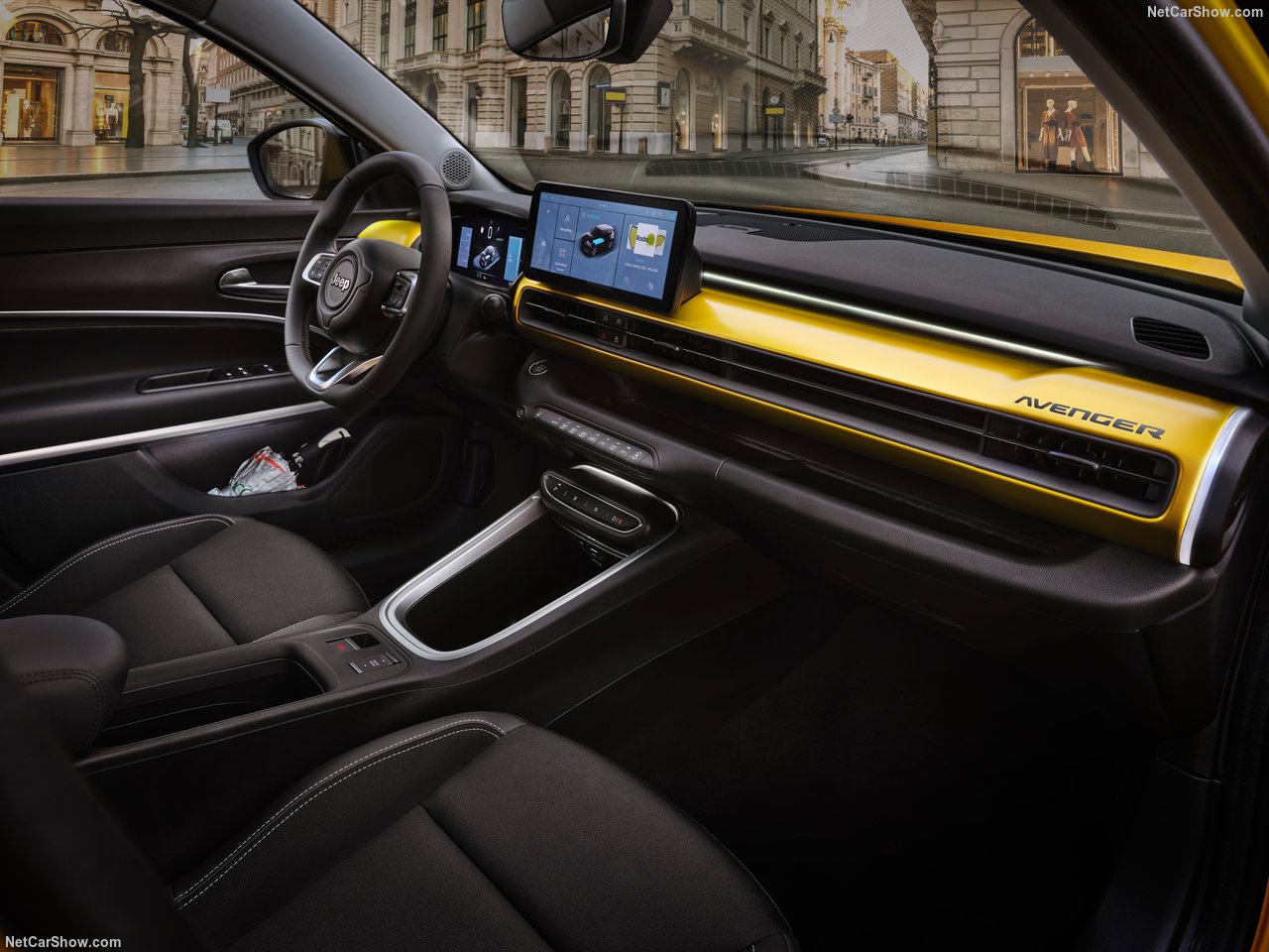 어벤저에는 10.25인치 터치스크린과 디지털 클러스터(7인치 또는 10.25인치)가 탑재되며, Uconnect 인포테인먼트는 무선 애플 카플레이와 안드로이드 오토를 지원합니다.