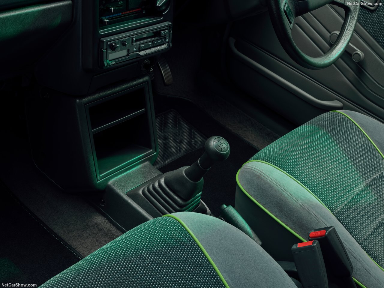 실내는 당시 감성을 살린 회색 직물 시트가 유지됐어요. 대신 라임 그린 파이핑과 스티치가 더해져 포인트가 살아 있지요. 이 색상은 기아 EV6 GT와 같은 계열이라, 과거와 현재를 잇는 디자인 요소로 연결돼 있어요.