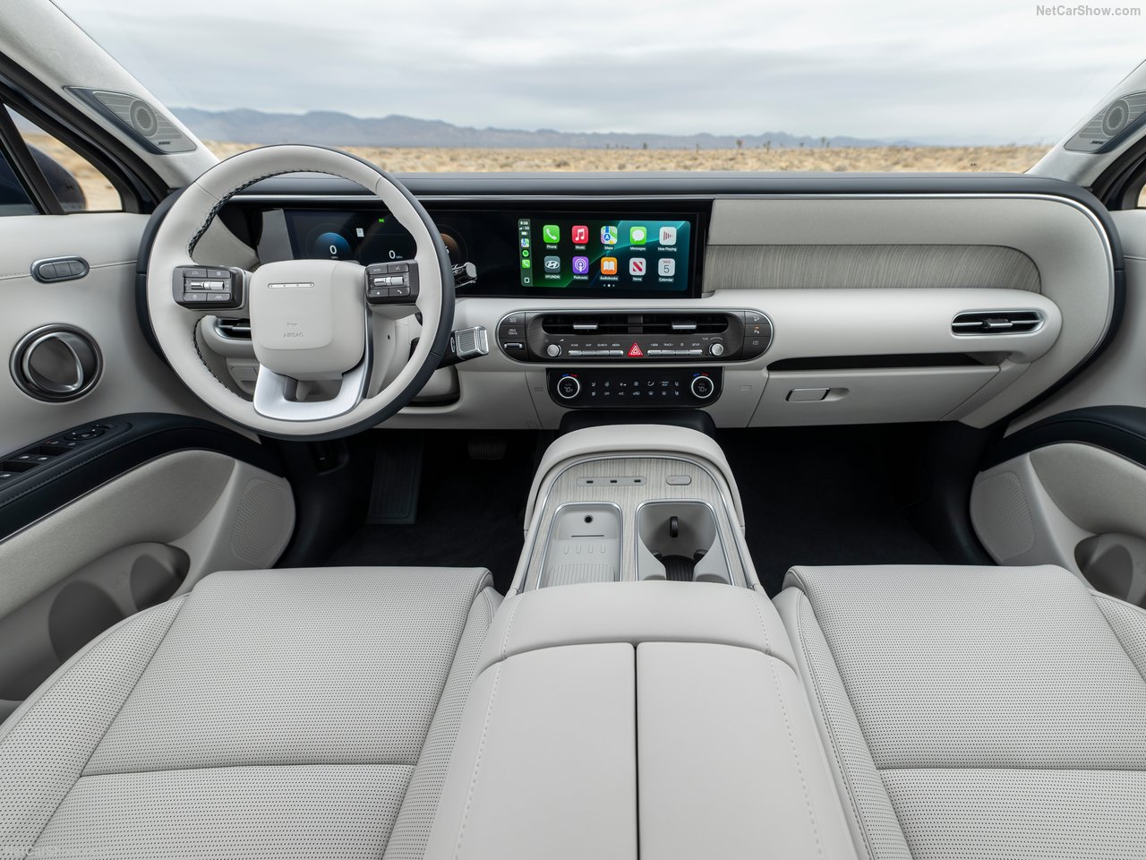 신형 펠리세이드는 전면 파노라마 디스플레이를 도입하며, 운전자 중심의 UX(사용자 경험)를 강화했습니다. 계기판과 인포테인먼트 디스플레이는 각각 12.3인치로 구성되며, 센터페시아의 물리 버튼은 최소화하고 터치 조작과 햅틱 피드백 기반으로 진화했습니다. 고급 트림에서는 프리미엄 가죽, 나파 가죽 시트, 우드 및 메탈릭 트림 등 고급 소재가 사용됩니다.
