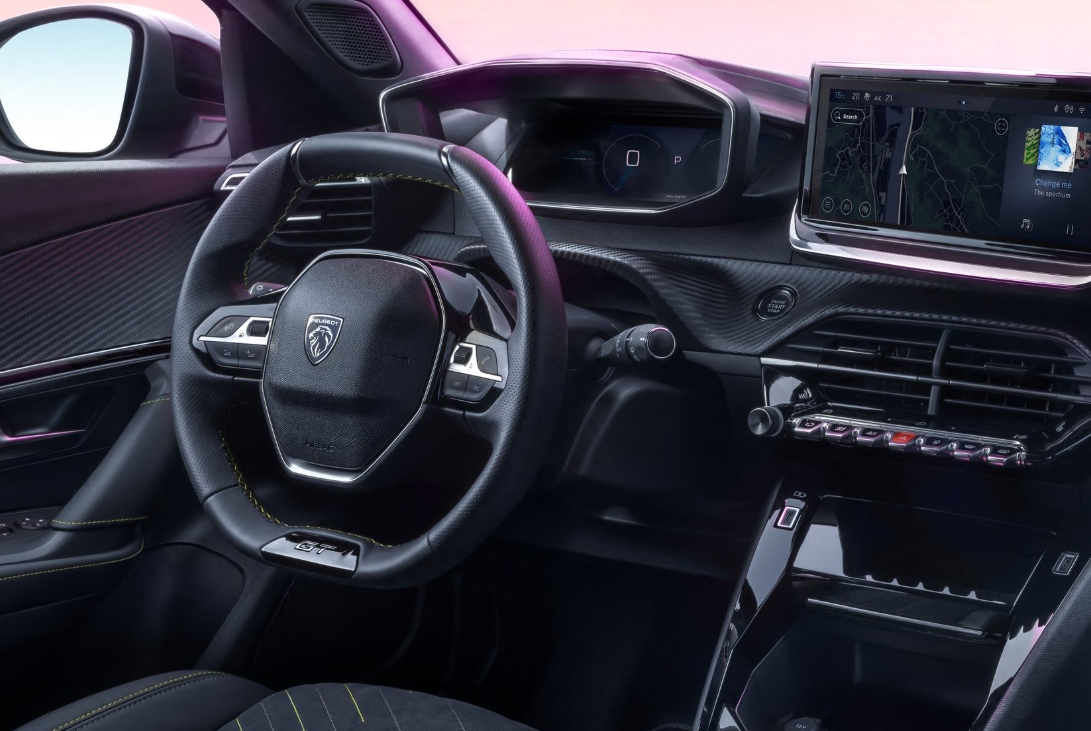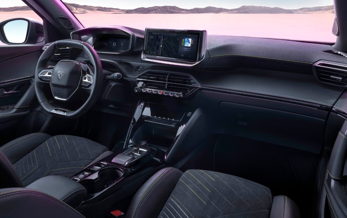 실내는 i-콕핏(i-Cockpit) 구조가 적용되어, 콤팩트한 스티어링 휠과 계기판이 상단에 배치되어 운전자의 시야 확보에 도움을 줍니다.