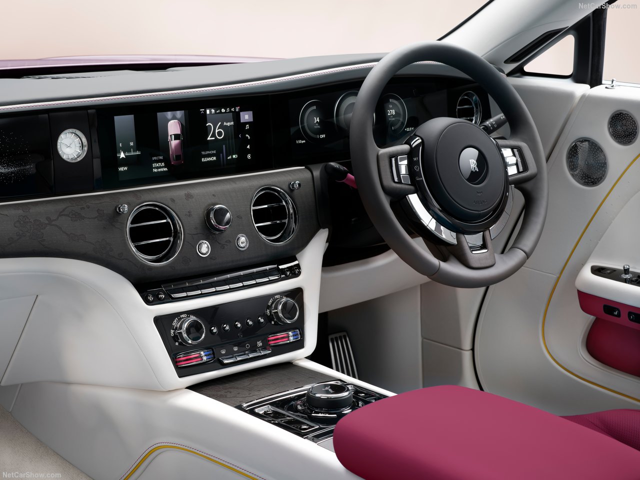 이번에 공개된 Spectre Inspired by Primavera는 외관, 실내, 감성 요소까지 모두 비스포크로 구성되어 있어요. 외부에서는 차량 측면에 직접 손으로 그린 체리블로섬(벚꽃) 무늬가 가장 먼저 눈에 띄는데요, 이 무늬는 차량마다 조금씩 다른 감각으로 제작되며, 일일이 수작업으로 진행된다고 해요.