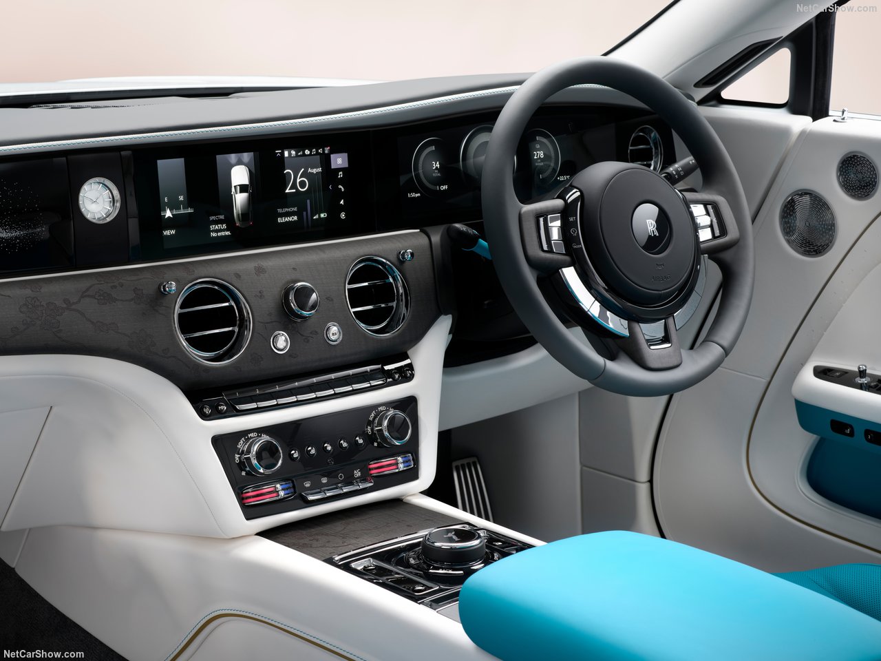 이번에 공개된 Spectre Inspired by Primavera는 외관, 실내, 감성 요소까지 모두 비스포크로 구성되어 있어요. 외부에서는 차량 측면에 직접 손으로 그린 체리블로섬(벚꽃) 무늬가 가장 먼저 눈에 띄는데요, 이 무늬는 차량마다 조금씩 다른 감각으로 제작되며, 일일이 수작업으로 진행된다고 해요.